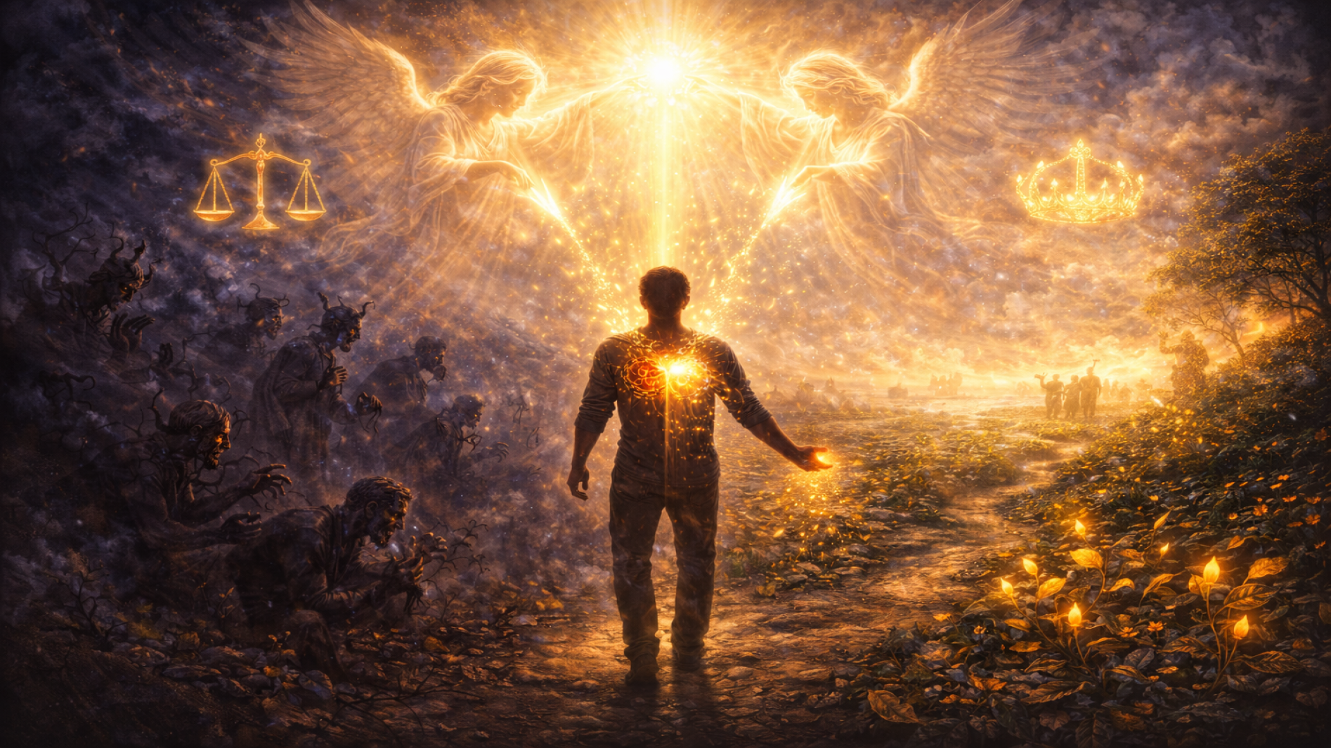 Possuído do sentimento de caridade e de amor ao próximo, faz o bem pelo bem, sem esperar paga alguma; retribui o mal com o bem, toma a defesa do fraco contra o forte, e sacrifica sempre seus interesses à justiça.