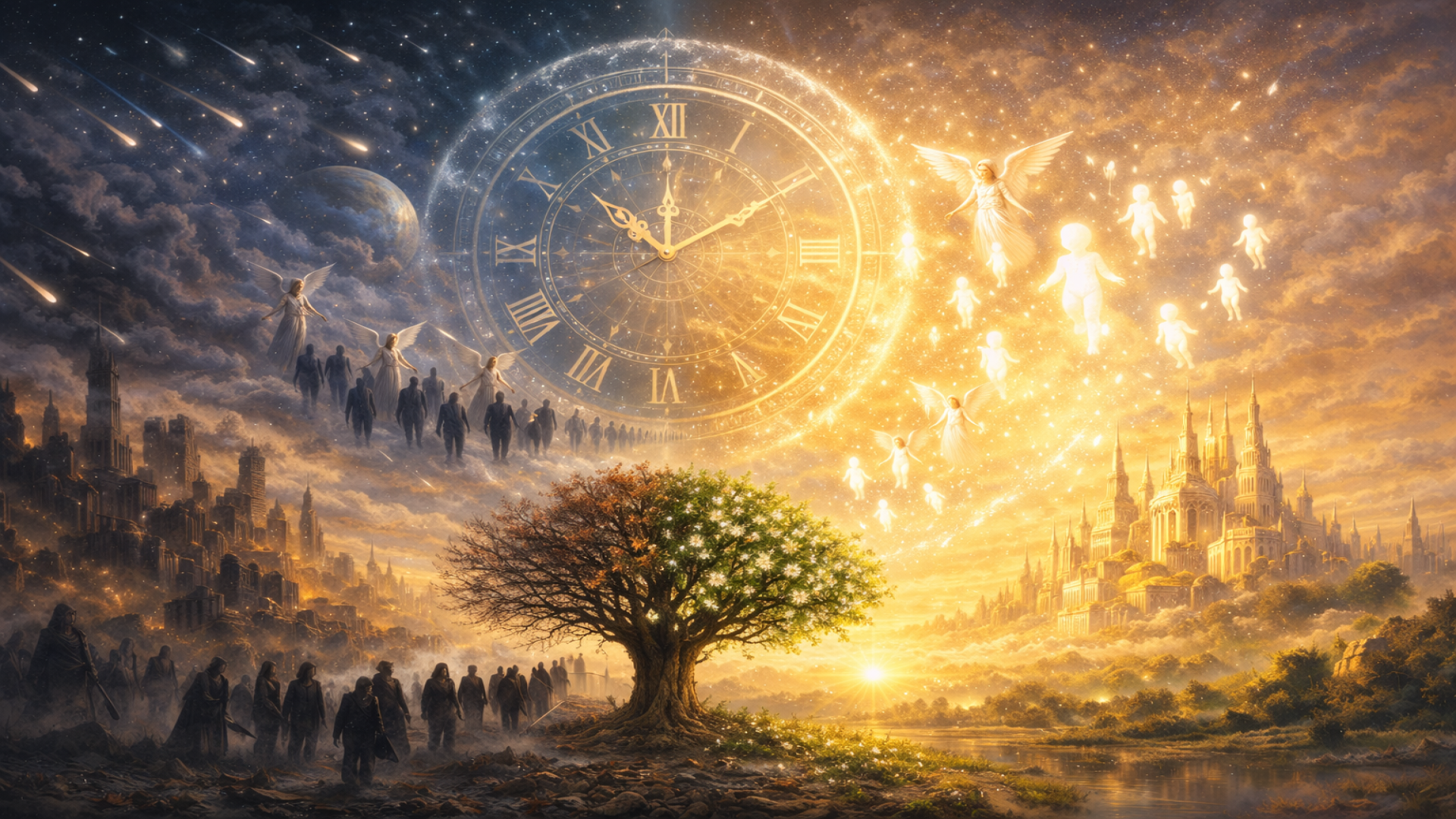 “À agitação dos encarnados e desencarnados se juntam às vezes, e frequentemente mesmo, já que tudo se conjuga em a natureza, as perturbações dos elementos físicos. Dá-se então, durante algum tempo, verdadeira confusão geral, mas que passa como furacão, após o qual o céu volta a estar sereno, e a humanidade, reconstituída sobre novas bases, imbuída de novas ideias, começa a percorrer nova etapa de progresso.