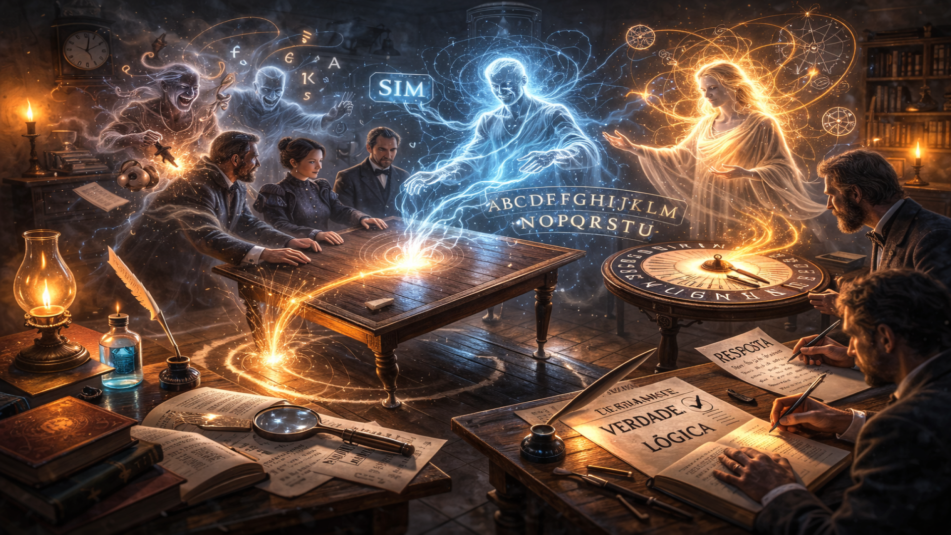Como se vê, este modo de operar é muito lento e consome longo tempo para as comunicações de certa extensão. Entretanto, pessoas há que têm tido a paciência de se utilizarem dele, para obter ditados de muitas páginas. A prática levou, porém, à descoberta de abreviaturas, que permitiram trabalhar-se com maior rapidez. A de uso mais frequente consiste em colocar o experimentador, diante de si, um alfabeto e a série dos algarismos indicadores das unidades. Estando o médium à mesa, uma outra pessoa percorre sucessivamente as letras do alfabeto, se se trata de obter uma palavra, ou a série dos algarismos, se de um número. Apontada a letra que serve, a mesa, por si mesma, bate uma pancada e escreve-se a letra. Recomeça-se a operação para obter-se a segunda, depois a terceira letra e assim sucessivamente. Se tiver havido engano em alguma letra, o Espírito previne, fazendo a mesa dar repetidas pancadas, ou produzir um movimento especial, e recomeça-se. Com o hábito, chega-se a andar bem depressa. Mas, adivinhando o fim de uma palavra começada e com a qual se pode atinar pelo sentido da frase, é como, sobretudo, se consegue abreviar de muito a comunicação. Em havendo incerteza, pergunta-se ao Espírito se foi esta ou aquela palavra a que ele quis empregar e o Espírito responde sim, ou não.