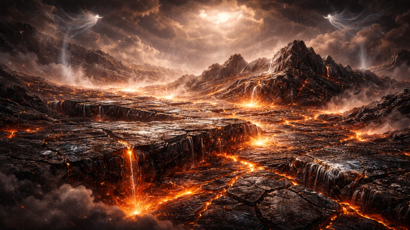 Período de transição. 22. No começo do período de transição, ainda pequena era a espessura da sólida crosta granítica, que, portanto, resistência muito fraca oferecia à eferves...
