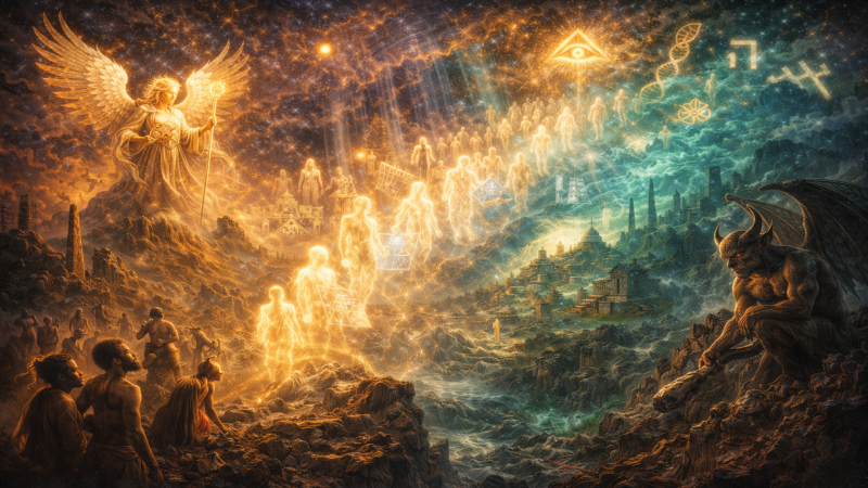 Doutrina dos anjos decaídos e da perda do paraíso. 43. Os mundos progridem, fisicamente, pela elaboração da matéria e, moralmente, pela purificação dos Espíritos que os habitam...