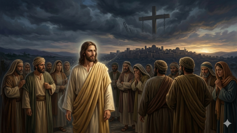 Morte e paixão de Jesus. 3. (Após a cura do lunático) — Todos ficaram admirados do grande poder de Deus. E, estando todos presa de admiração pelo que Jesus fazia, disse ele a s...