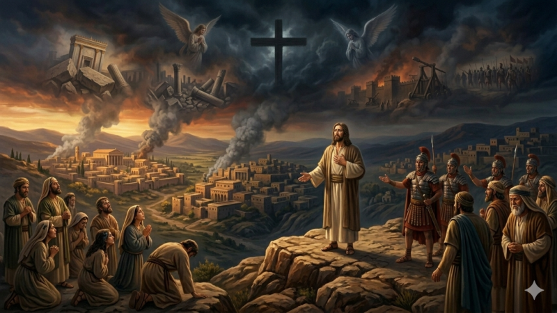 Ruína do Templo e de Jerusalém. 15. Quando Jesus saiu do templo para se ir embora, seus discípulos se acercaram dele para lhe fazerem notar a estrutura e a grandeza daquele edi...