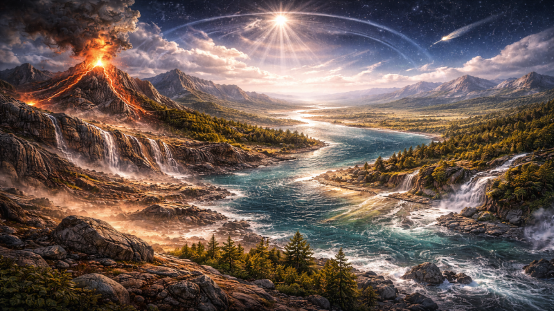 A criação primária. 12. Depois de termos considerado o universo sob os pontos de vista gerais da sua composição, das suas leis e das suas propriedades, podemos estender os noss...