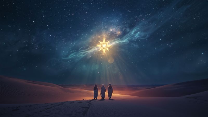 Estrela dos magos. 4. > Diz-se que uma estrela apareceu aos magos que foram adorar a Jesus; que ela lhes ia à frente indicando-lhes o caminho e que se deteve quando eles che...