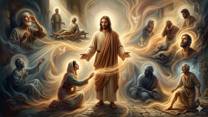 Curas. Perda de sangue. 10. > Então, uma mulher, que havia doze anos sofria de uma hemorragia; — que sofrera muito nas mãos dos médicos e que, tendo gasto todos os seus...