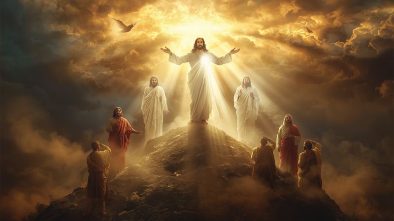Transfiguração. 43. Seis dias depois, tendo chamado de parte a **Pedro**, **Tiago** e **João**, **Jesus** os levou consigo a um alto monte afastado* e se **transfigurou** diant...